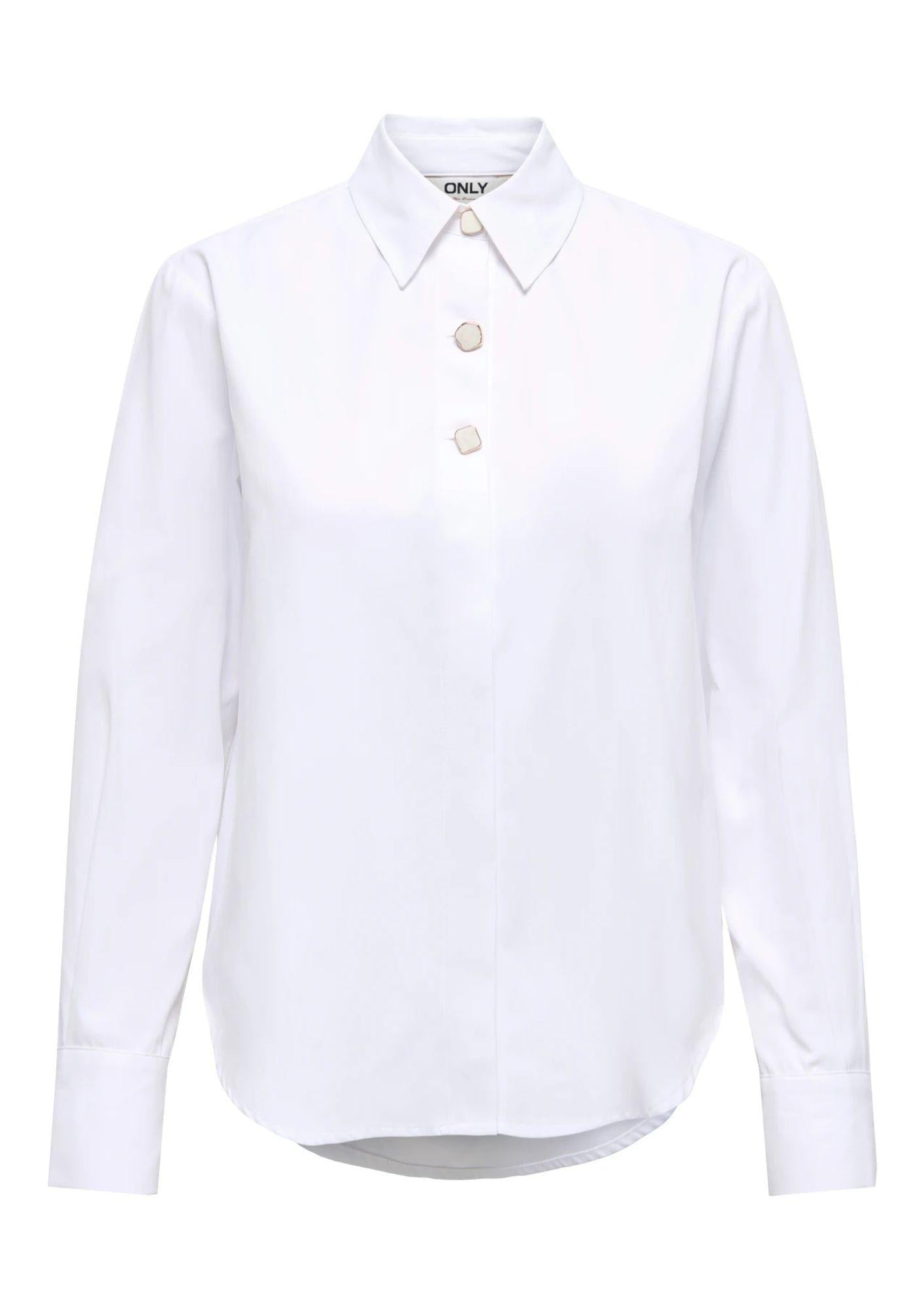 Camicia con collo calssico, maniche lunghe, polsini con bottone, chiusura con bottoni, più lungo sul dietro