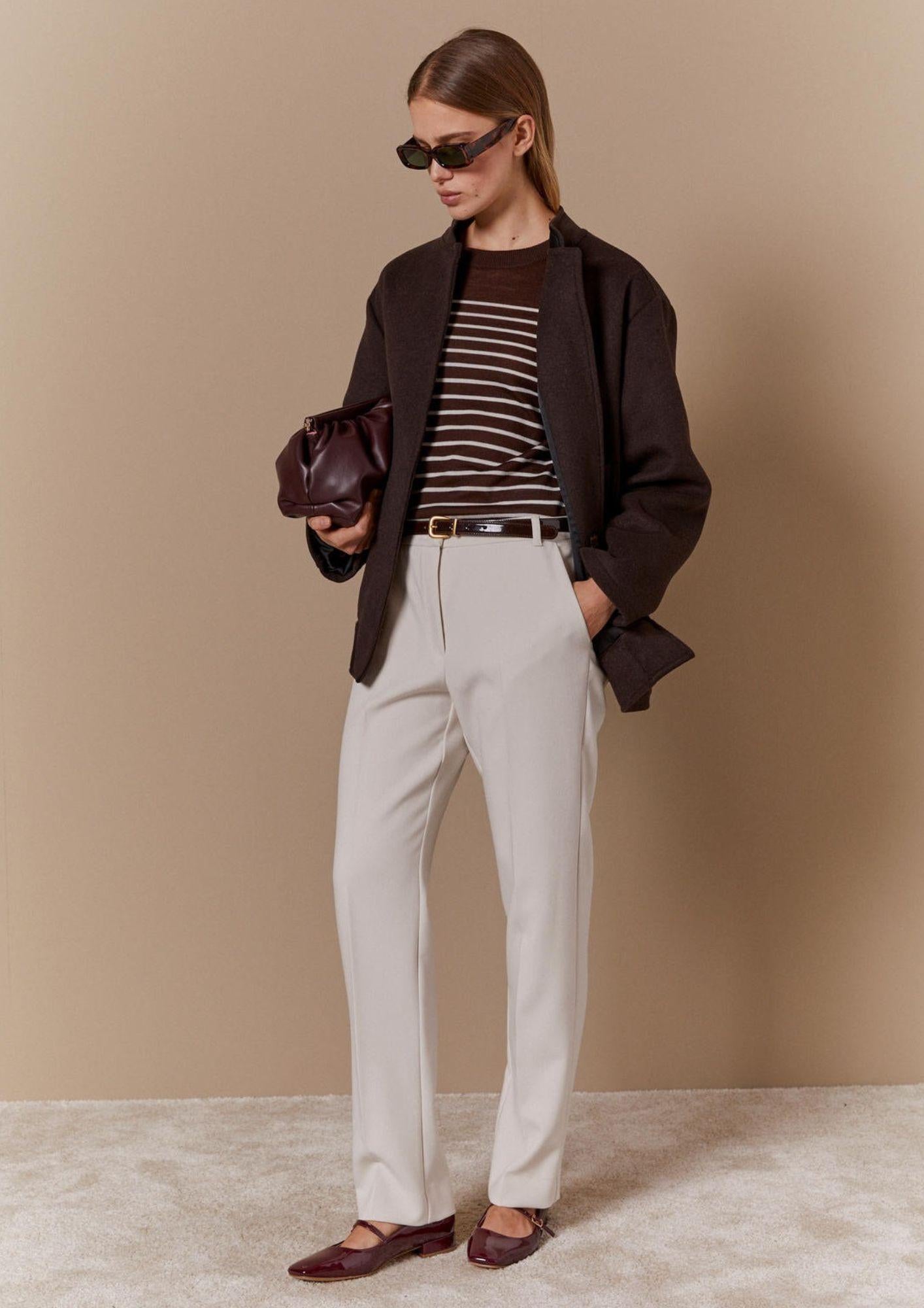 Cappotto da donna in panno doppio di misto lana che fonde eleganza sartoriale e spirito sportivo, reinterpretando liconico bomber in chiave raffinata. Le linee morbide e il fondo arricciato donano movimento e femminilità, mentre il collo alto aggiunge un tocco grafico contemporaneo. Dotato di chiusura con bottoni automatici nascosti, tasche laterali con patta e fodera interna con etichetta Manteco, è il capo ideale per un look metropolitano dal comfort sofisticato. Fit morbido. Collo a bomber. Fondo con fascia arricciata. Tessuto 59% lana, 26% poliestere, 10% poliammide, 5% altre fibre. Fodera 97% poliestere, 3% elastan.