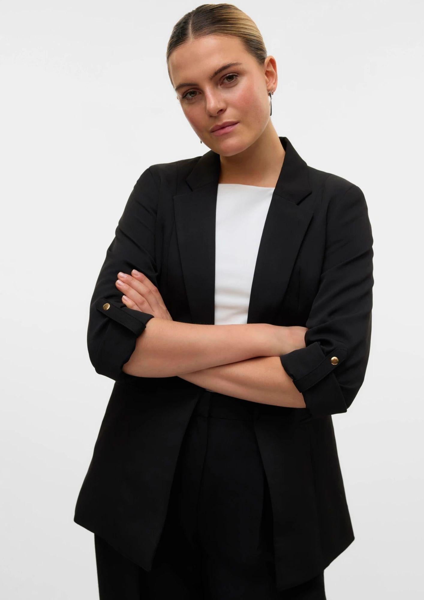 Blazer con collo reverse dal taglio slim fit, elegante e versatile, perfetto per aggiungere un tocco di classe a qualsiasi look. Realizzato in poliestere riciclato ed elastan, offre una vestibilità comoda e moderna. Dotato di tasche frontali e fodera in poliestere, si abbina facilmente a t-shirt e jeans per un outfit casual chic o a pantaloni eleganti per uno stile più formale. Esterno 95% poliestere riciclato, 5% elastan, imbottitura 100% poliestere.