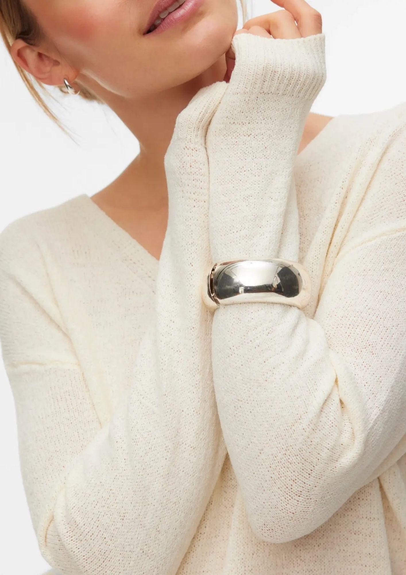 Maglione lavorato a maglia con scollo a V e maniche lunghe, spalle scese, regular fit.