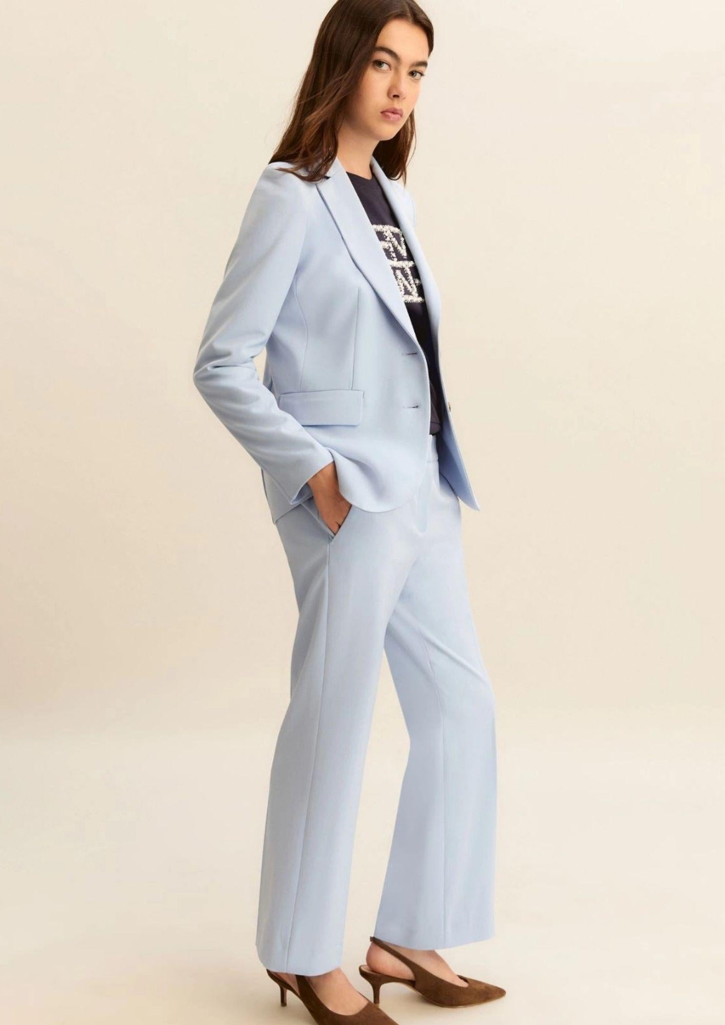 Due bottoni in chiusura e un soffice twill stretch definiscono questa giacca monopetto dalla linea femminile. La scelta ideale per chi vuole affrontare l'ufficio con una nota di colore. Giacca in twill tecnico bistretch con fodera interna Fit regolare