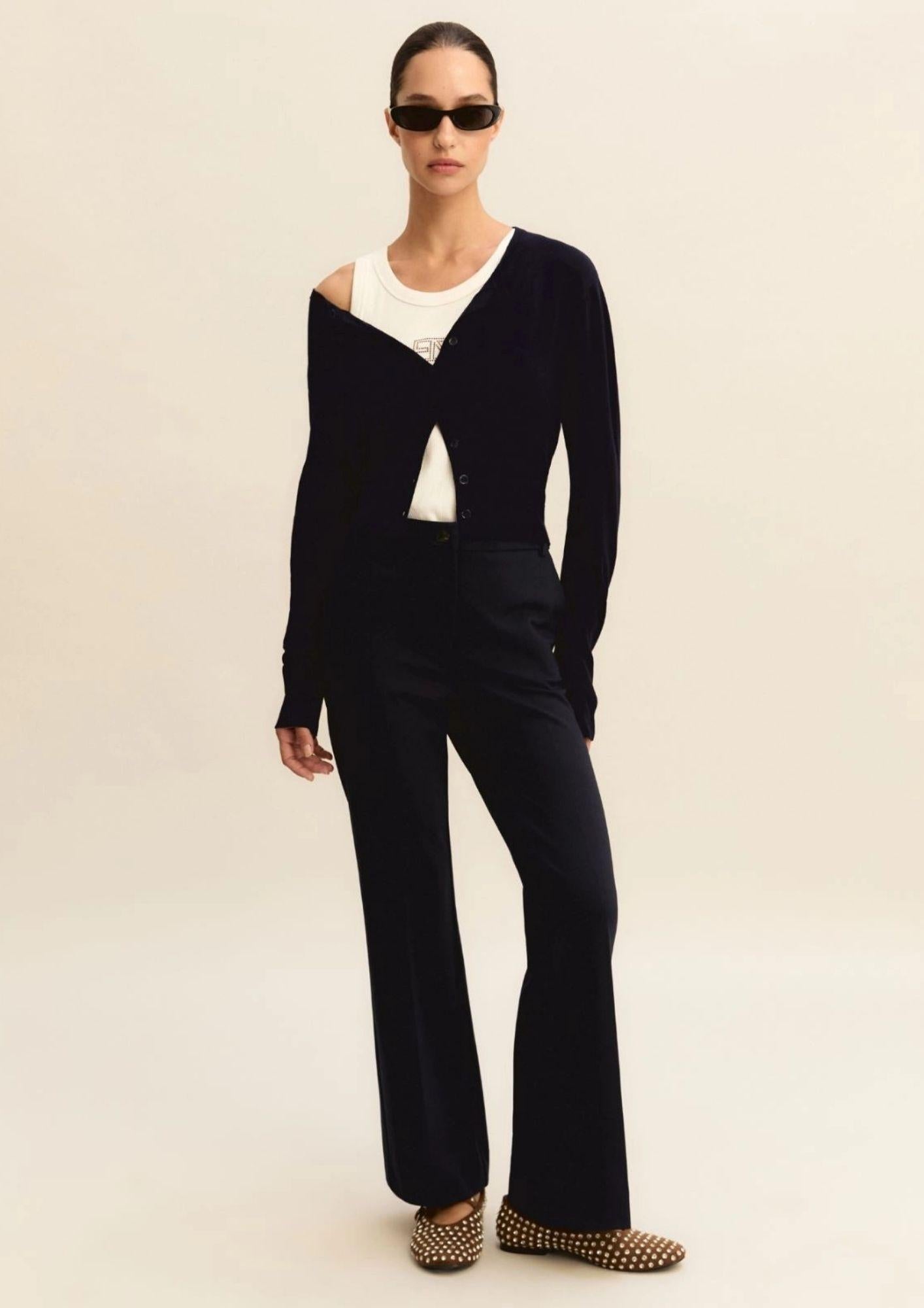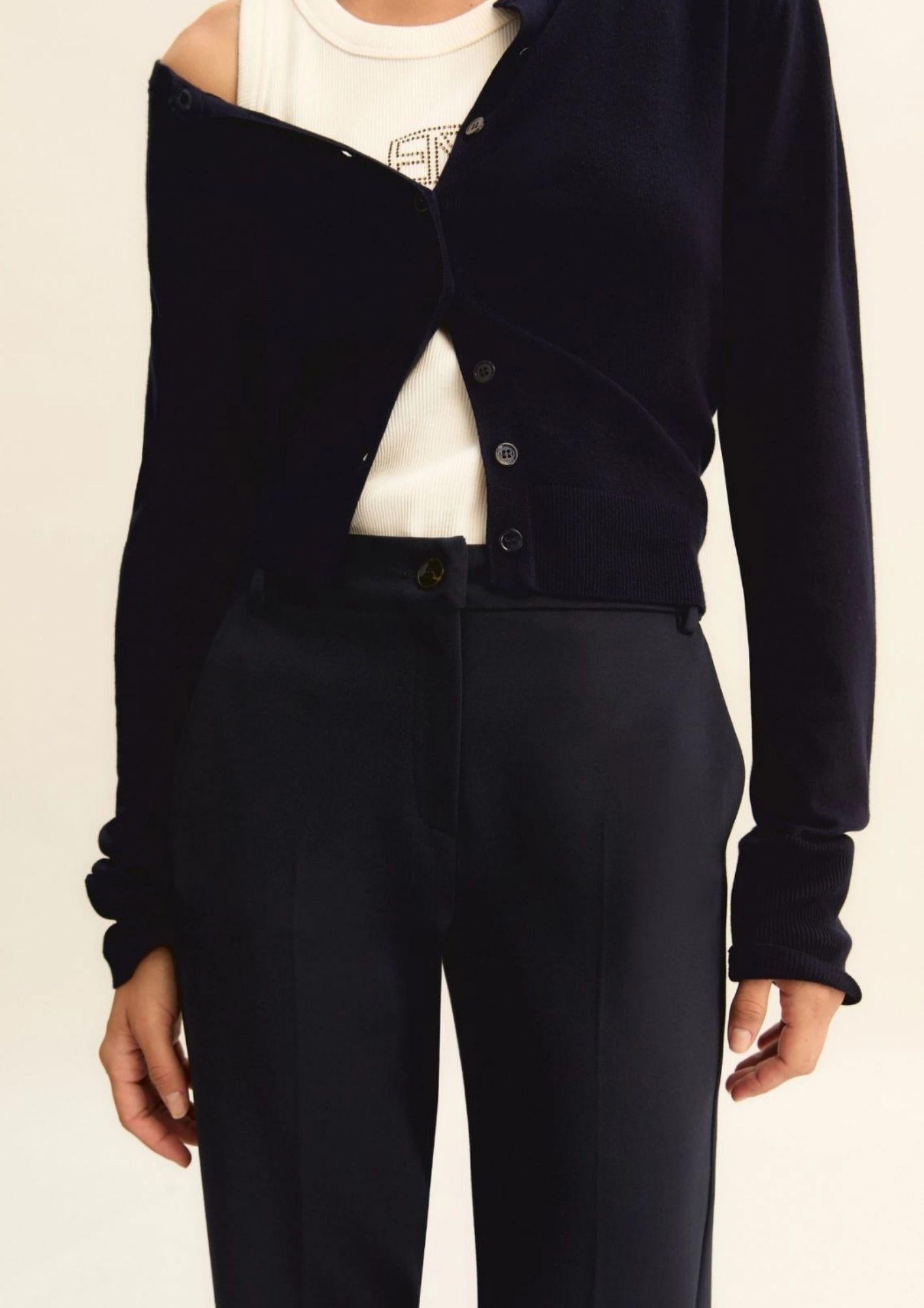 Linea flare al fondo Tasche laterali alla francese e pince posteriori Piega stirata fronte e retro. Tessuto a maglia: 62% Viscosa, 32% Poliammide, 6% Elastan