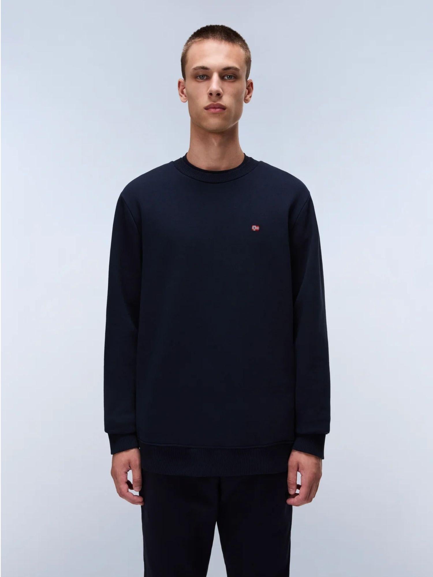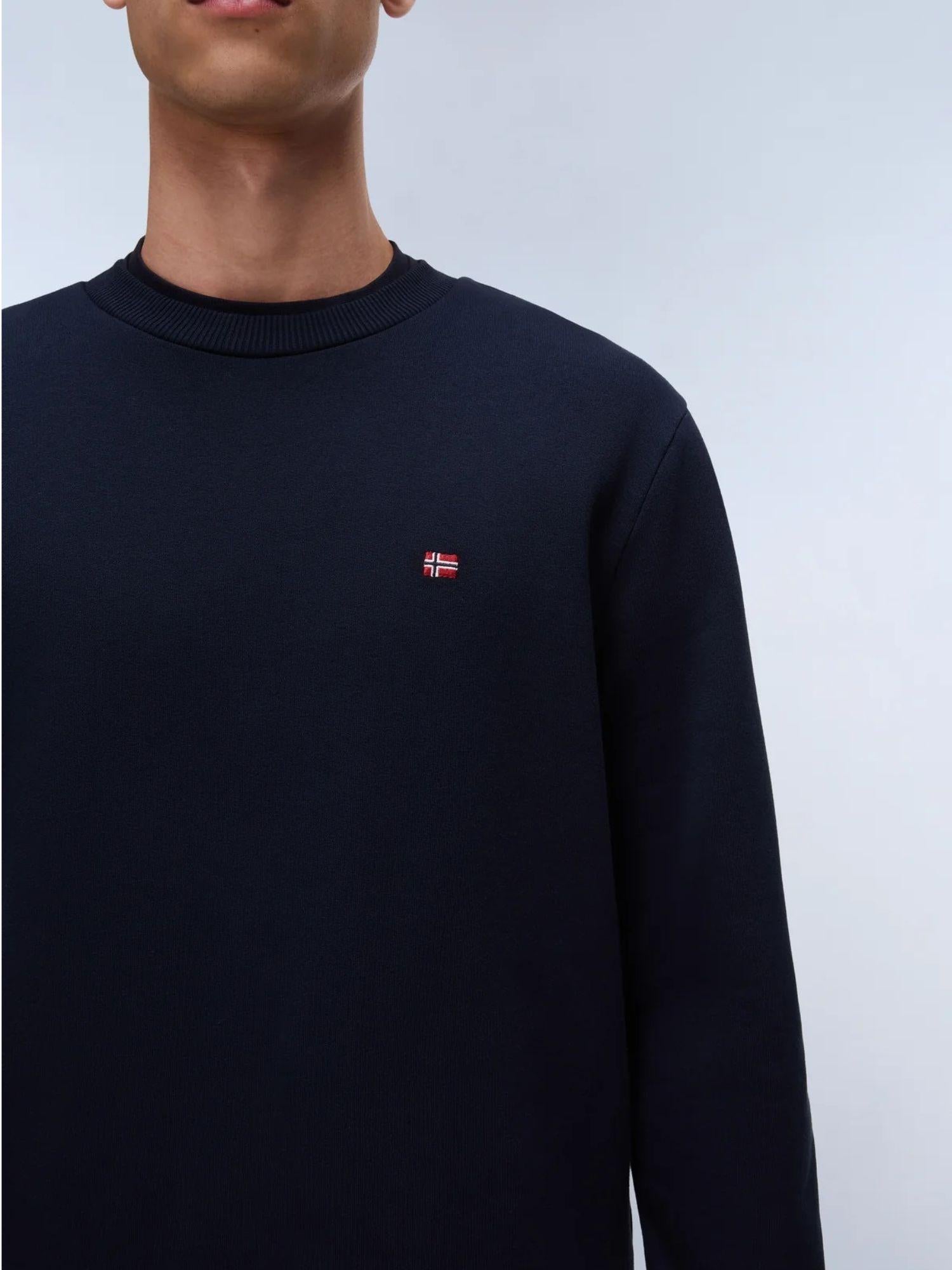 Felpa a vestibilità regular, dalla silhouette classica e proporzionata, fedele alla taglia. Presenta finiture a costine e dettagli ricamati. Composizione: 80% cotone, 20% poliestere. Il modello è alto 1,89 cm e indossa la taglia L.