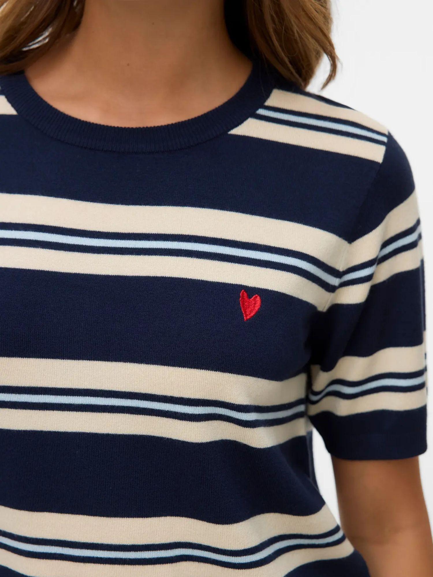 Nessun guardaroba è mai completo senza il tuo maglione preferito, e questo potrebbe essere il tuo nuovo strato superiore preferito. Il modo perfetto per stare al caldo ed essere alla moda senza rinunciare alla comodità. Pura perfezione! Tipo di prodotto: Pullover in maglia. Collo: Girocollo. Manica: Maniche corte. Lunghezza/Taglia: Questo prodotto veste la taglia indicata. Dettagli aggiuntivi: Ricamo. Vestibilità: Regular Fit. Lavorazione: Maglia piatta. Composizione: 80% Viscosa LENZING ECOVERO, 20% Nylon.