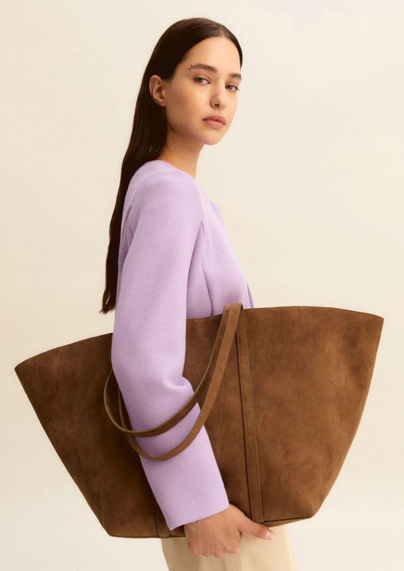 Maxi volume, maxi glamour: nuova shopper dalla linea geometrica, con moschettoni laterali che permettono di stringere i fianchi e modificare il design. Porta con te il tuo mondo, sempre. Shopper grande in jersey dal finish vellutato Chiudibile con moschettone laterale per una doppia portata Costruzione con doppio manico