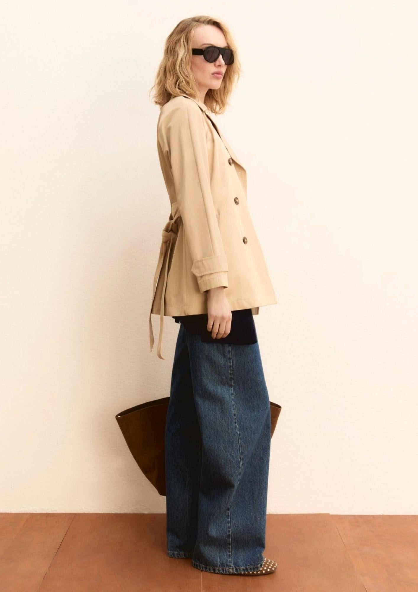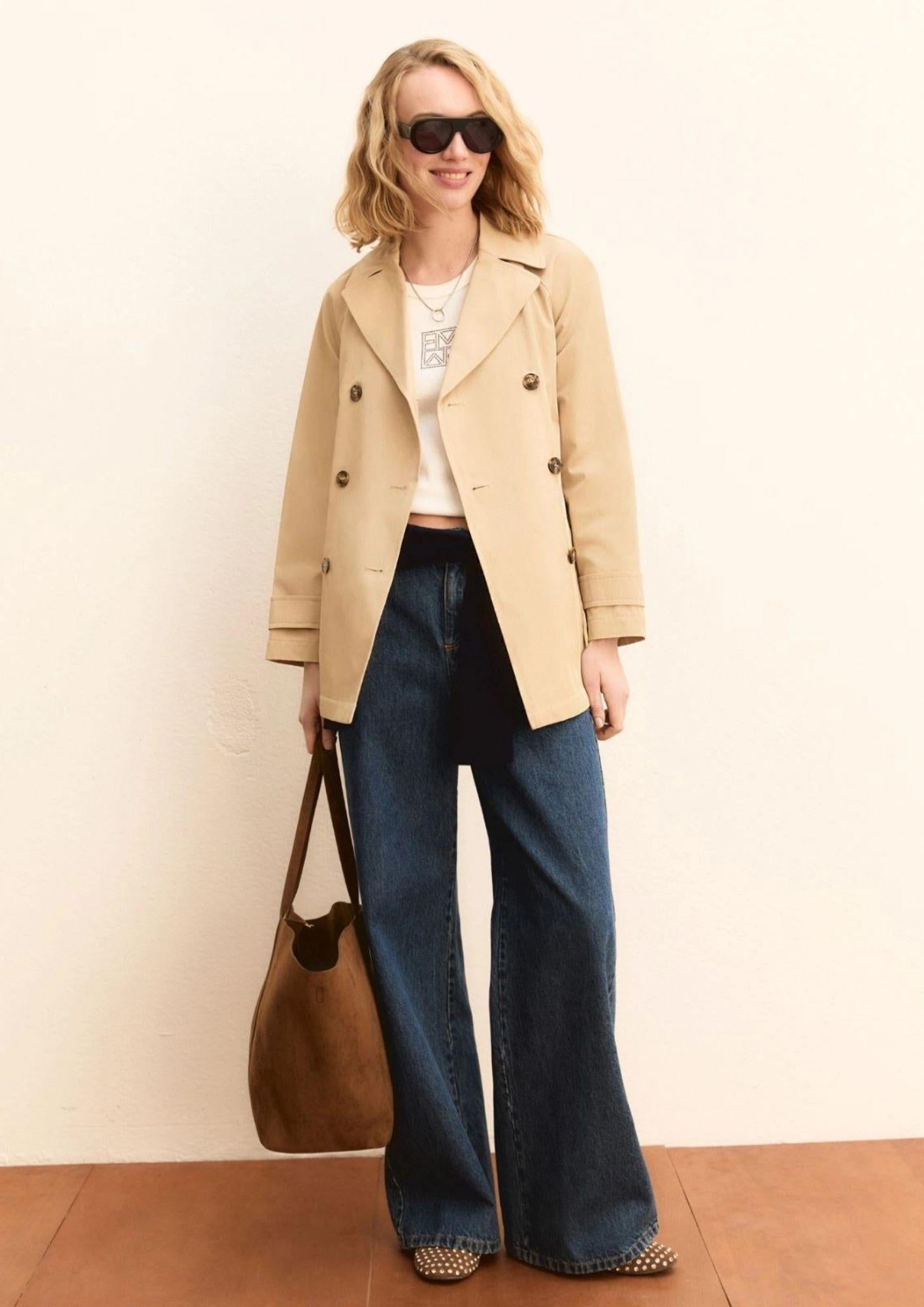 Se il tempo è incerto ma lo stile è definito, questo è il trench per te: corto, antigoccia, con cintura per definire il punto vita e slanciare la silhouette. Trench in gabardina antigoccia Fit regolare Collo a camicia