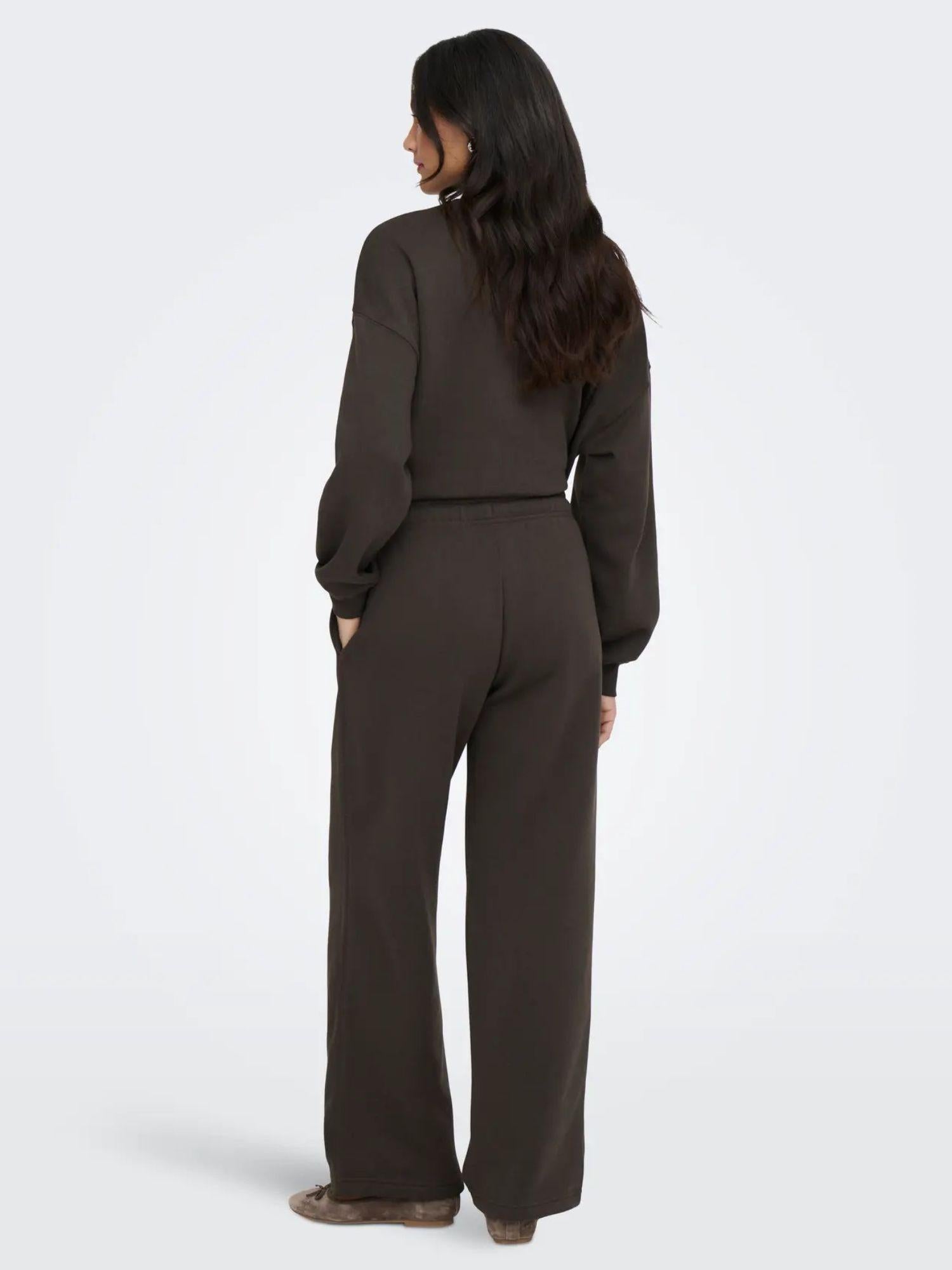 Pantaloni a vita media dal taglio ampio e rilassato, perfetti per un look casual e confortevole. Realizzati in morbido tessuto misto con poliestere riciclato e cotone, offrono traspirabilità e libertà di movimento. La coulisse regolabile in vita assicura una vestibilità personalizzata, mentre la gamba larga dona un tocco moderno e versatile. Ideali per il tempo libero o per creare outfit minimal e di tendenza. Composizione: 65% poliestere riciclato, 35% cotone.
