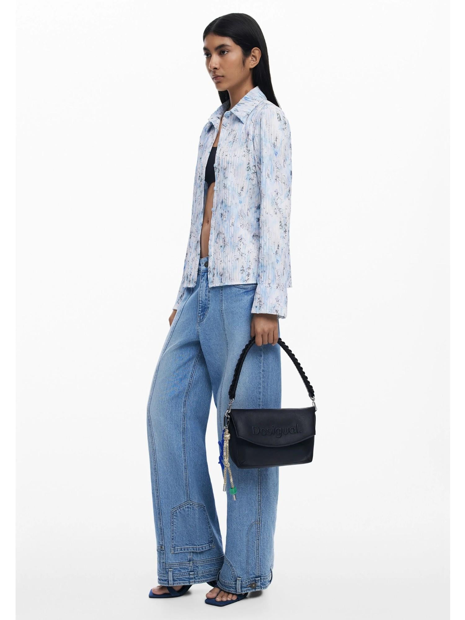 Borsa a tracolla in tessuto effetto pelle con logo effetto 3D, chiusura con cerniera, patta estensibile, manici intercambiabili e portachiavi rimovibile. Colore: tinta unita. Molteplici tasche. Chiusura: con cerniera. Manici intercambiabili. Logo effetto 3D. Portachiavi rimovibile. Effetto pelle. Risvolto estensibile. Progettato a Barcellona. Misure: 22,8 x 8 x 15,5/31,4 cm. Composizione esterna: 100% poliuretano. Composizione interna: 100% poliestere. Trimming fabric material: 100% poliuretano.