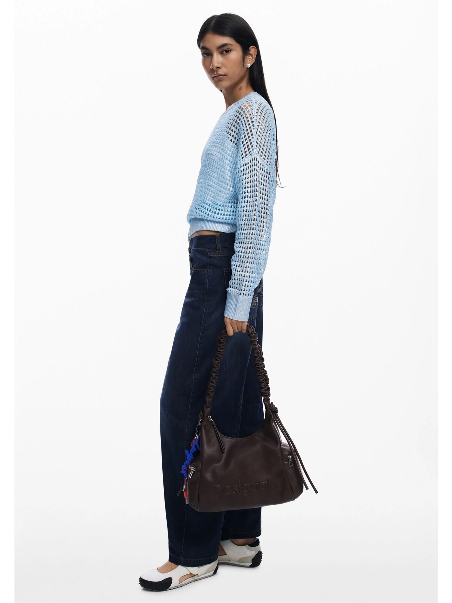 Desigual Borsa logo 3D con manico arricciato media Donna Marrone