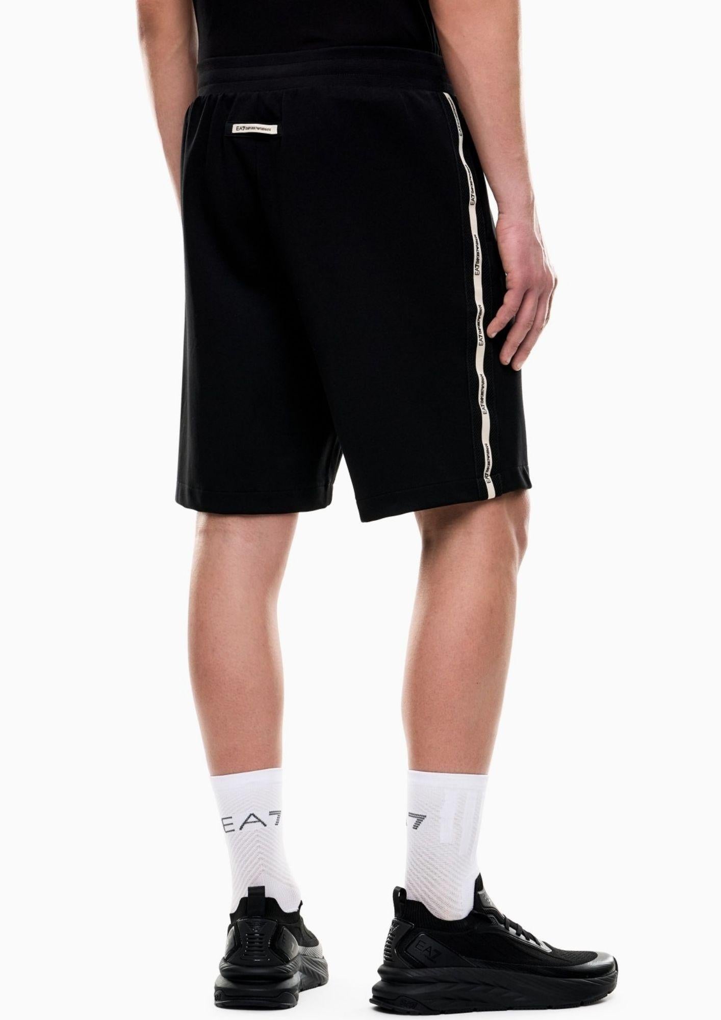 Bermuda con coulisse in vita e tasche laterali realizzati in morbido interlock di misto cotone. Il modello presenta degli inserti in mesh che percorrono entrambe i lati delle gambe con dettaglio tape logato. Perfetti per essere abbinati ad altre creazioni della linea Logo Series. Vita elastica con coulisse