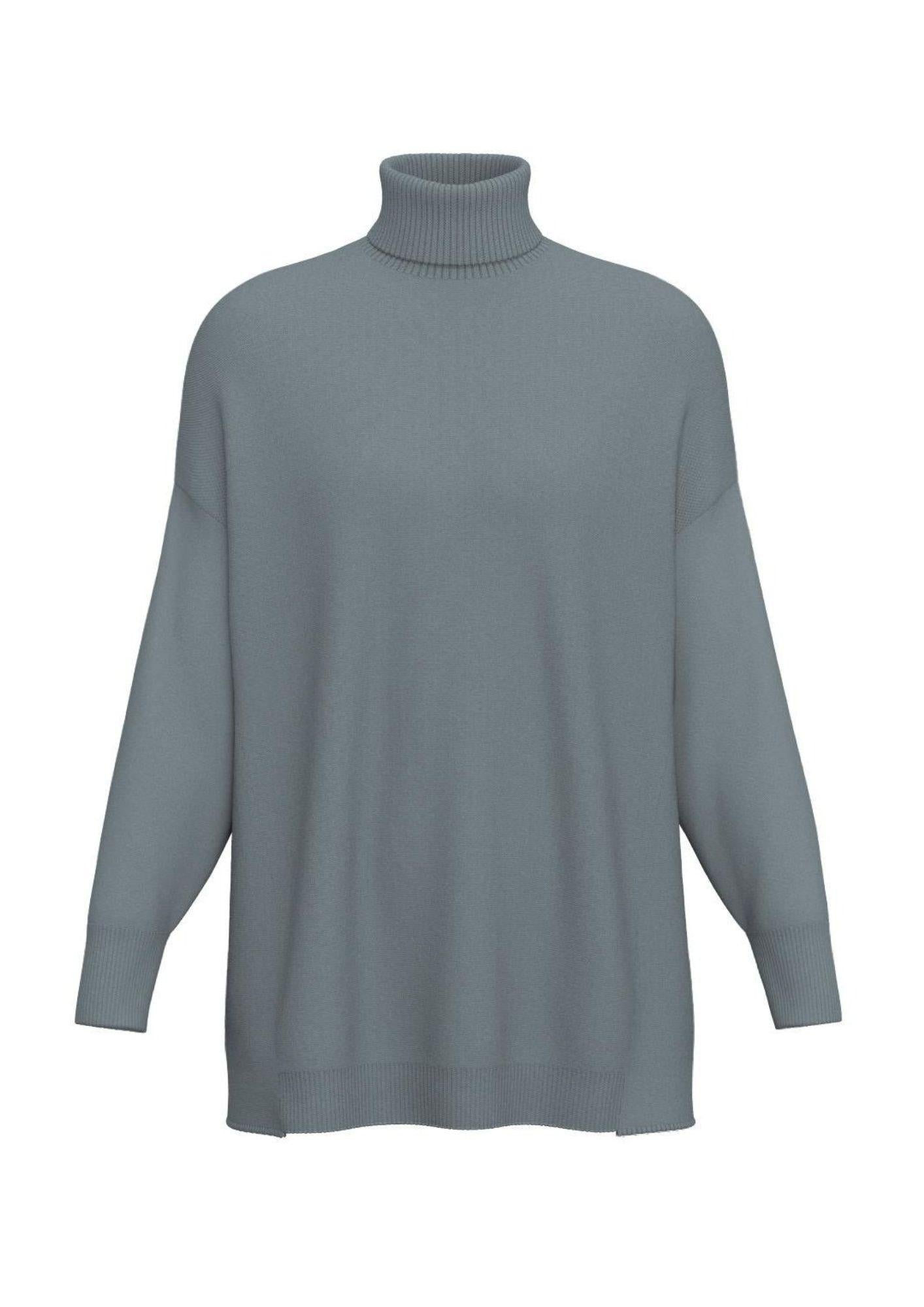 Fit oversize, collo a lupetto risvoltato, spalla scesa