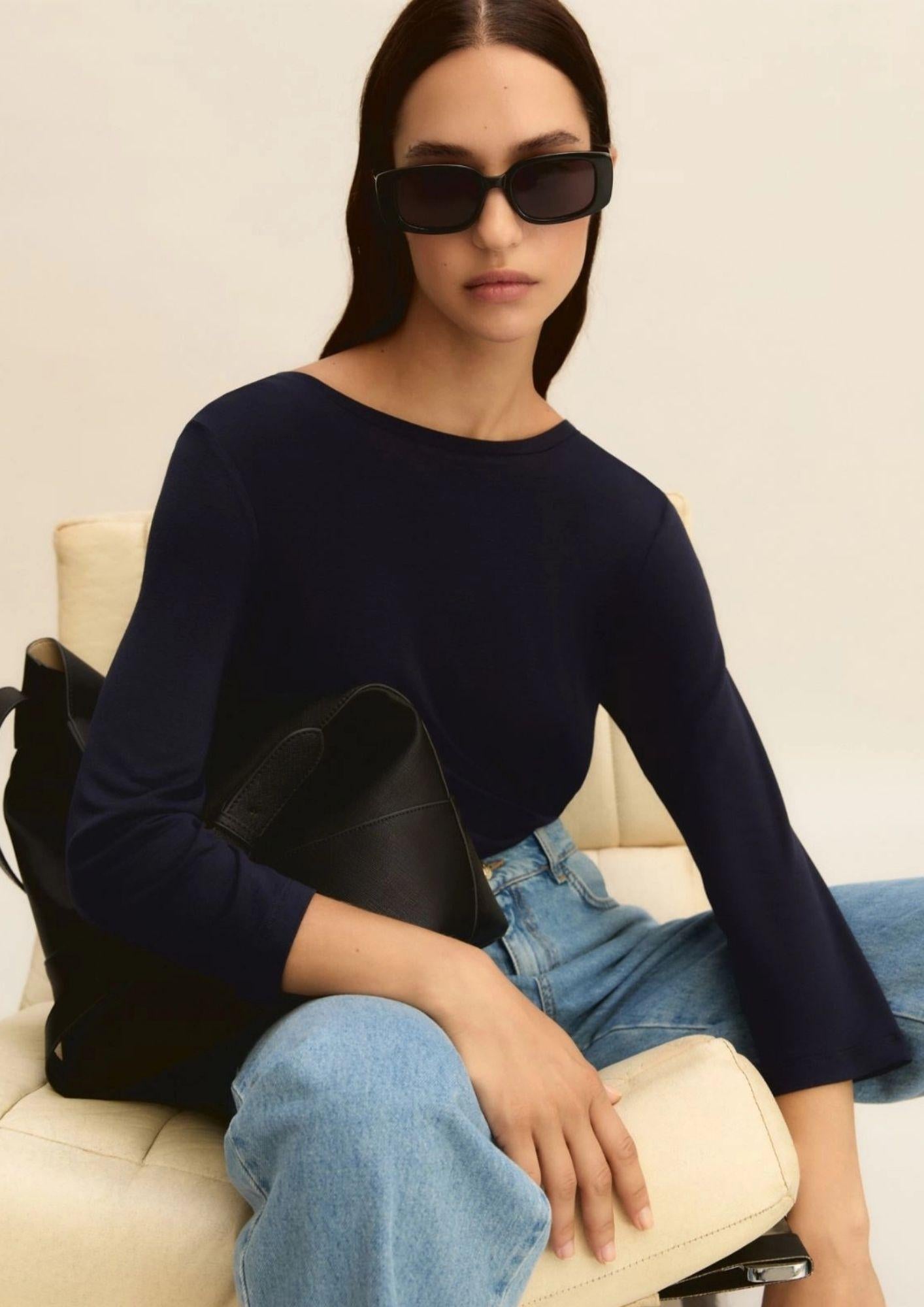 La bella stagione inizia con la marinière: in morbido jersey stretch, con maniche lunghe e le iconiche righe orizzontali. Impossibile resisterle. Tessuto principale contenente materie prime derivanti dalla cellulosa del legno, fibra ricavata nel rispetto del patrimonio forestale T-shirt in jersey interlock stretch Fit regolare