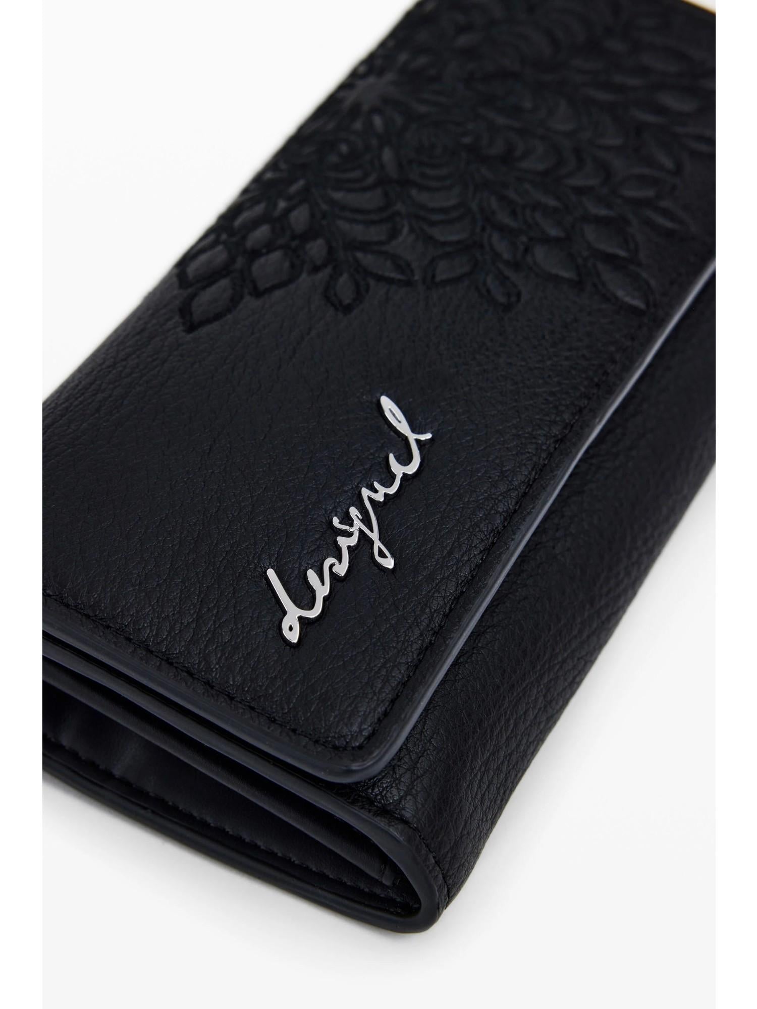Desigual Portamonete effetto pelle ricamato medio Donna Nero