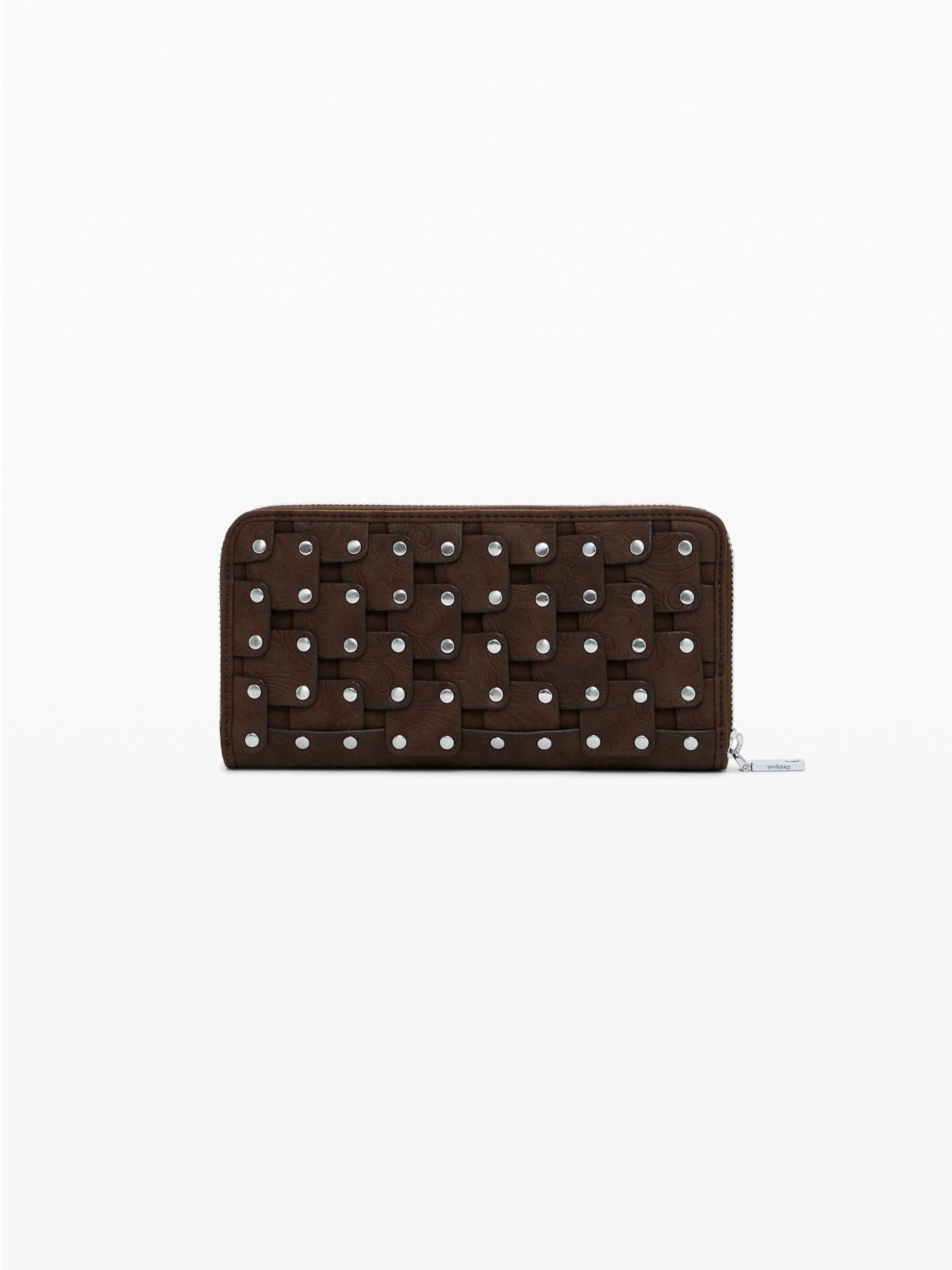 Desigual Portamonete grande effetto pelle con borchie Donna Marrone