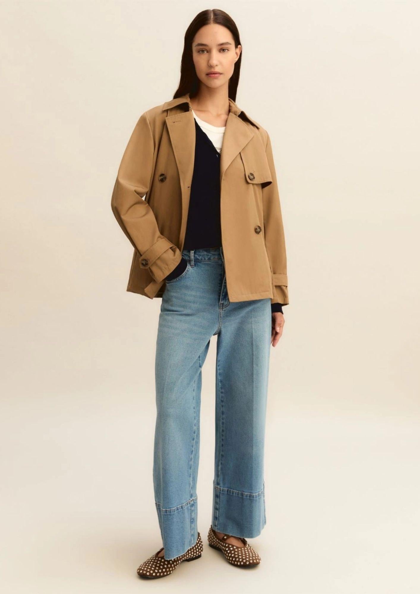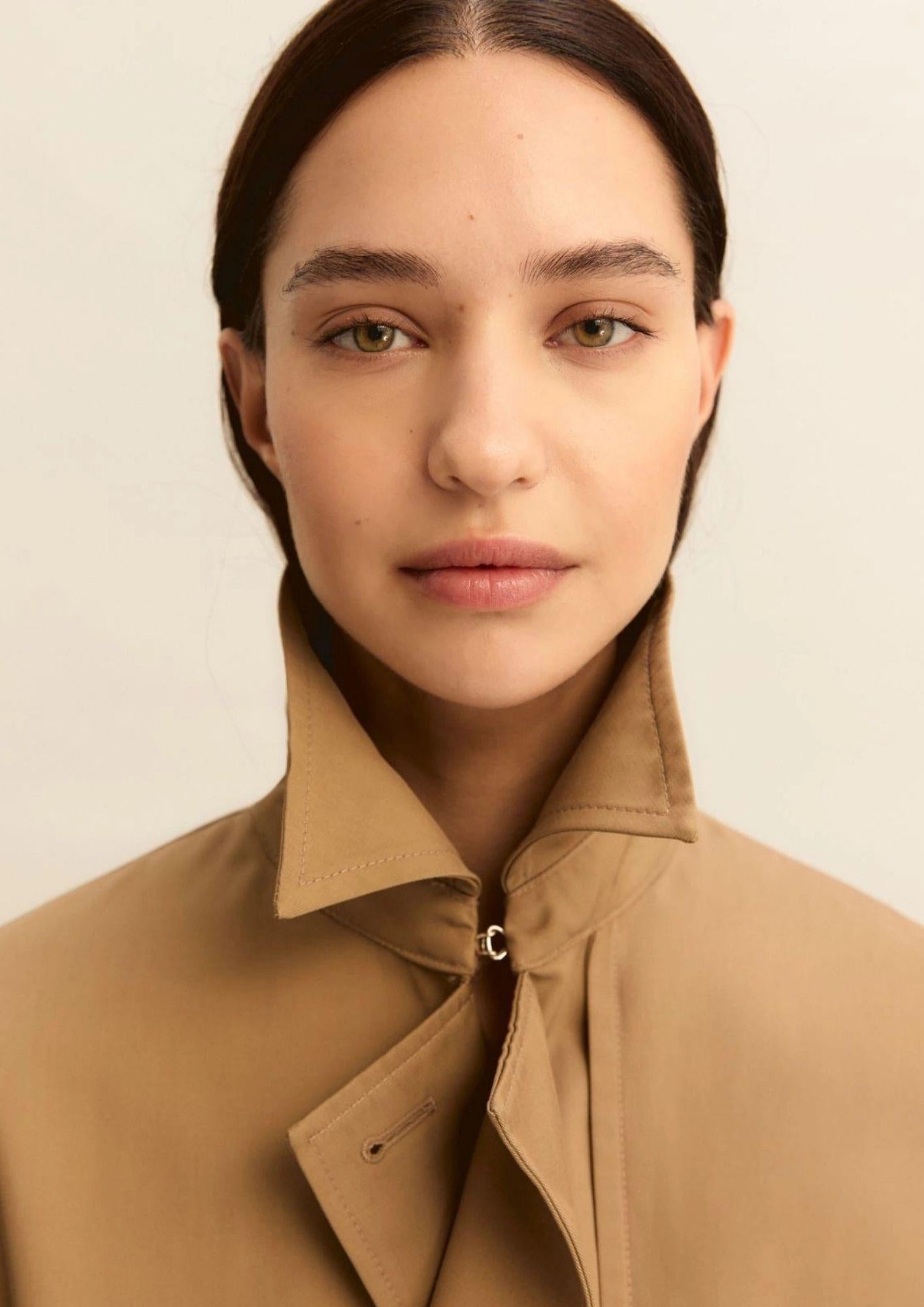 Doppiopetto per una silhouette decisa, questo impermeabile si ispira ai più classici trench giocando con dettagli iconici, come bavoletta e alamari ai polsi.Impermeabile in gabardina antigoccia