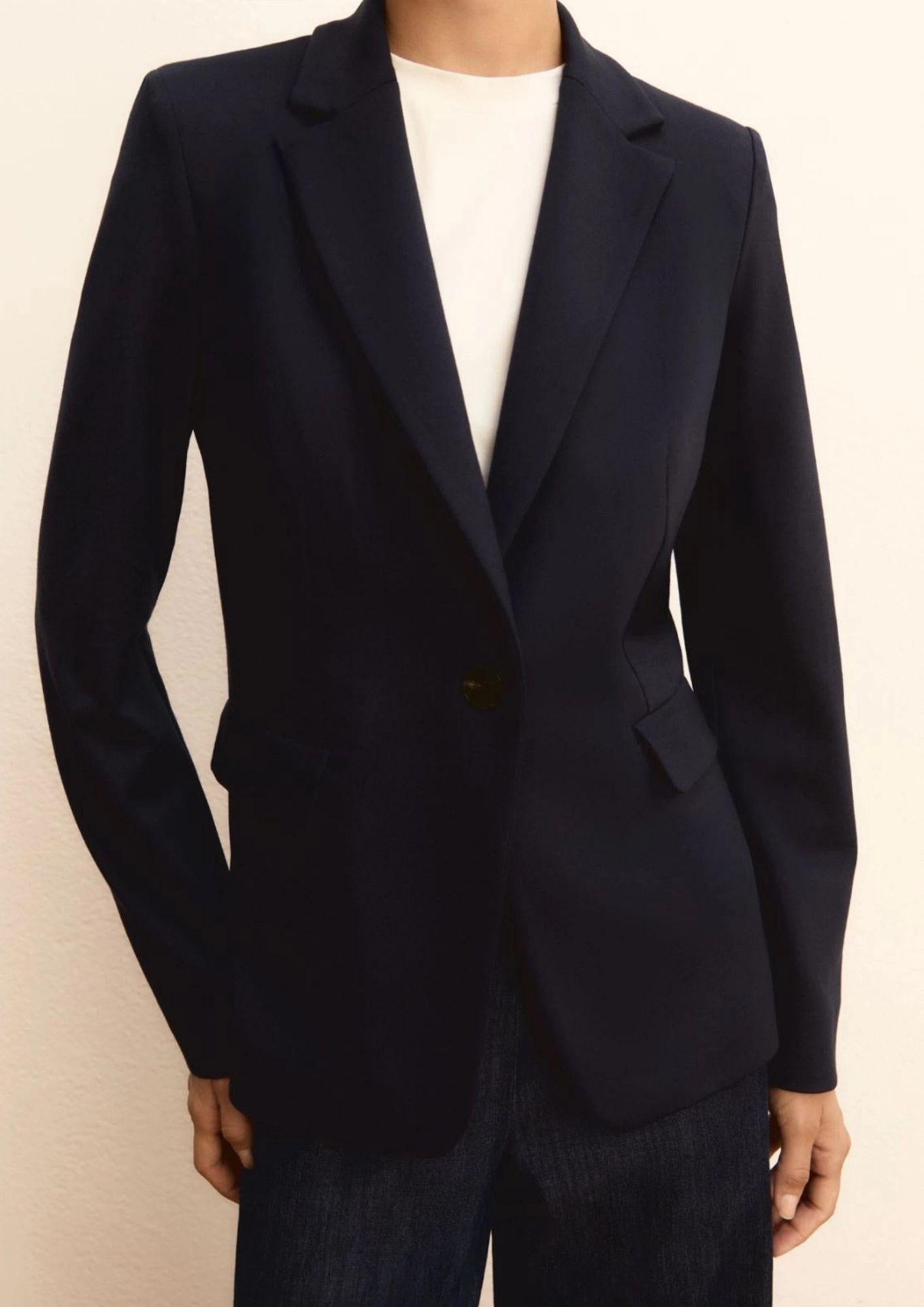 Nuovo blazer in jersey stretch, in connubio perfetto tra silhouette sartoriale definita e comfort totale. Monopetto, con rever e pince profonde che segnano i fianchi. Blazer in jersey stretch parzialmente foderato