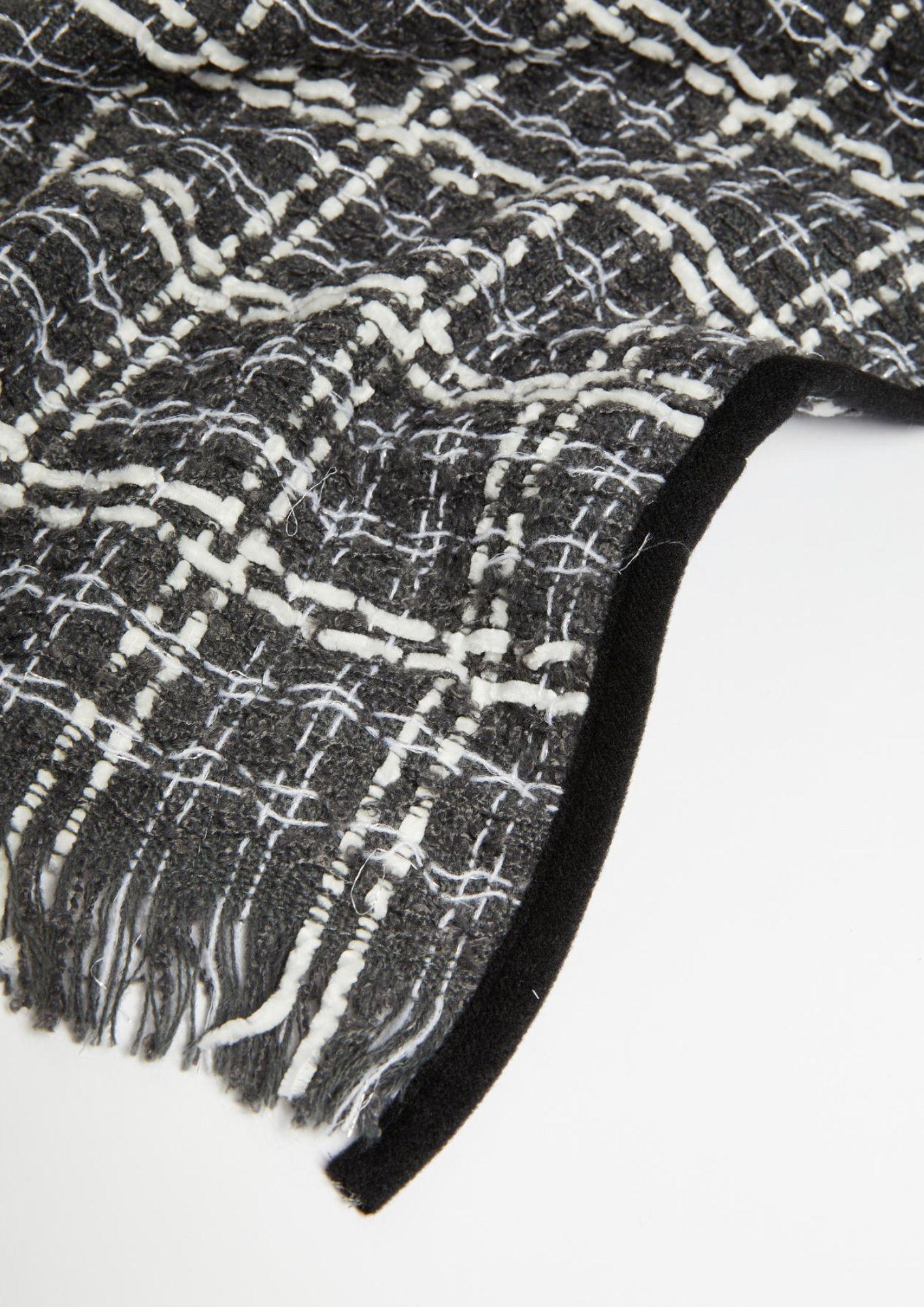 Morbido tessuto bouclé e uno scollo con piccolo rever definiscono questo nuovo poncho firmato Marella. Perfetto da indossare nelle giornate autunnali, sopra una maglia o un blazer. Poncho in tessuto tecnico bouclé, collo con rever, frange al fondo. Tessuto: 50% Poliestere, 49% Acrilica, 1% Fibra Metallizzata.