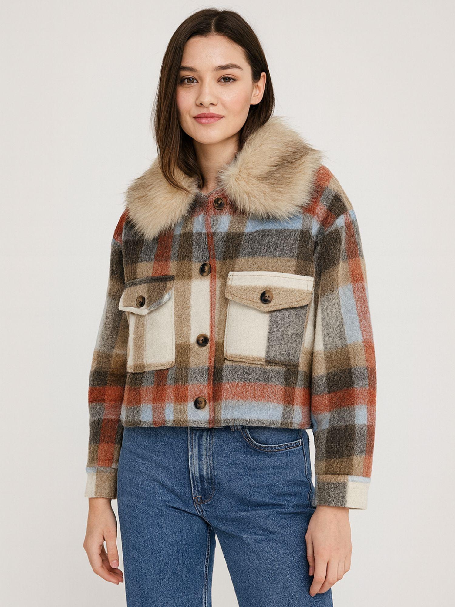 Giubbino con collo in finta pelliccia, due tasche frontali