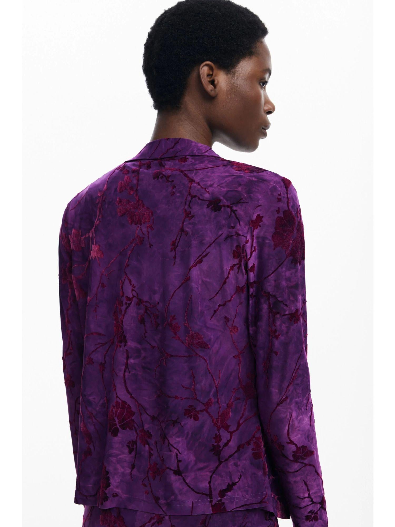 Maglietta a maniche lunghe con texture, abbottonatura frontale e stampa floreale di ispirazione orientale in tonalità viola. Stampa floreale. Fit regular. Colletto a camicia. Manica lunga. Chiusura con bottone. Tessuto con texture. Realizzato con materiali sostenibili. Collezione AW25. Progettato a Barcellona. Poliestere riciclato. Misure modello: altezza 180 cm, vita 61 cm, fianchi 89 cm. Taglia modello: S. Composizione esterna: 94% poliestere, 6% elastan.