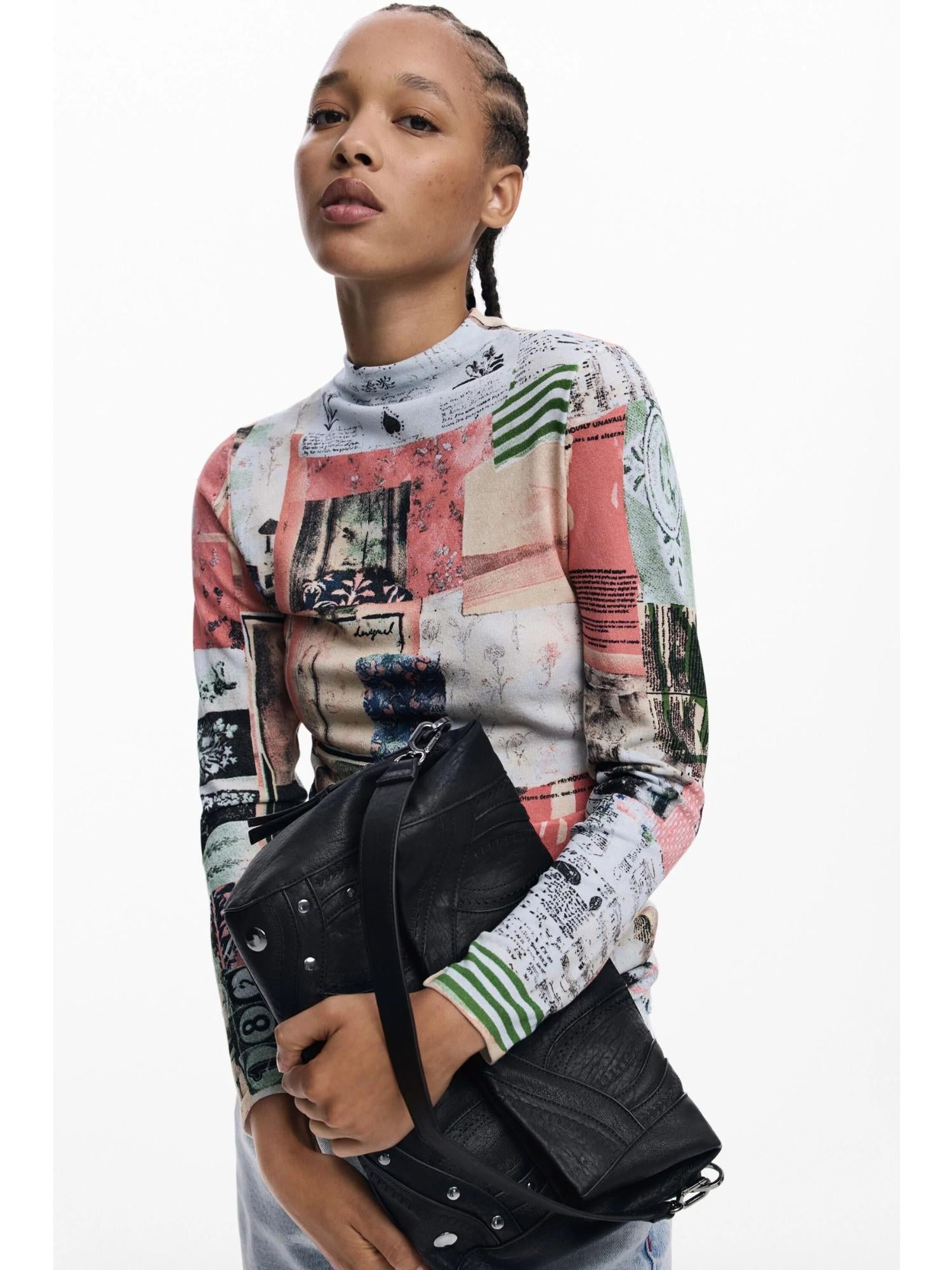 Desigual Borsa effetto pelle ricamata media Donna Nero