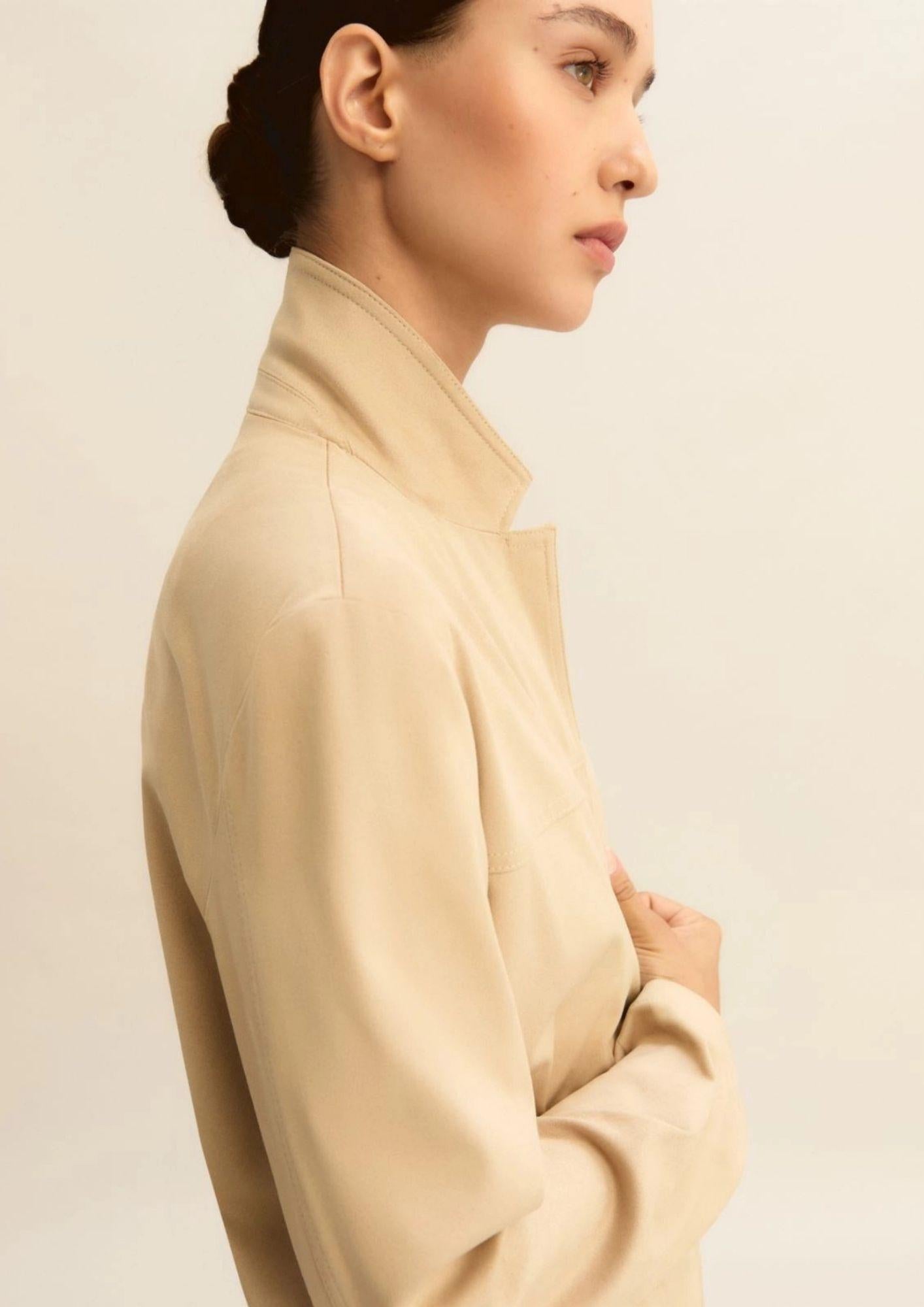 La costruzione del blazer, il tocco soft del jersey stretch dal finish vellutato: ecco la giacca protagonista dei look primaverili. Carattere urbano e dettagli ispirati ai modelli sartoriali. Giacca in jersey stretch dal finish vellutato Fit regolare Scollo con rever e carrè sul davanti Chiusura monopetto con bottoni a vista