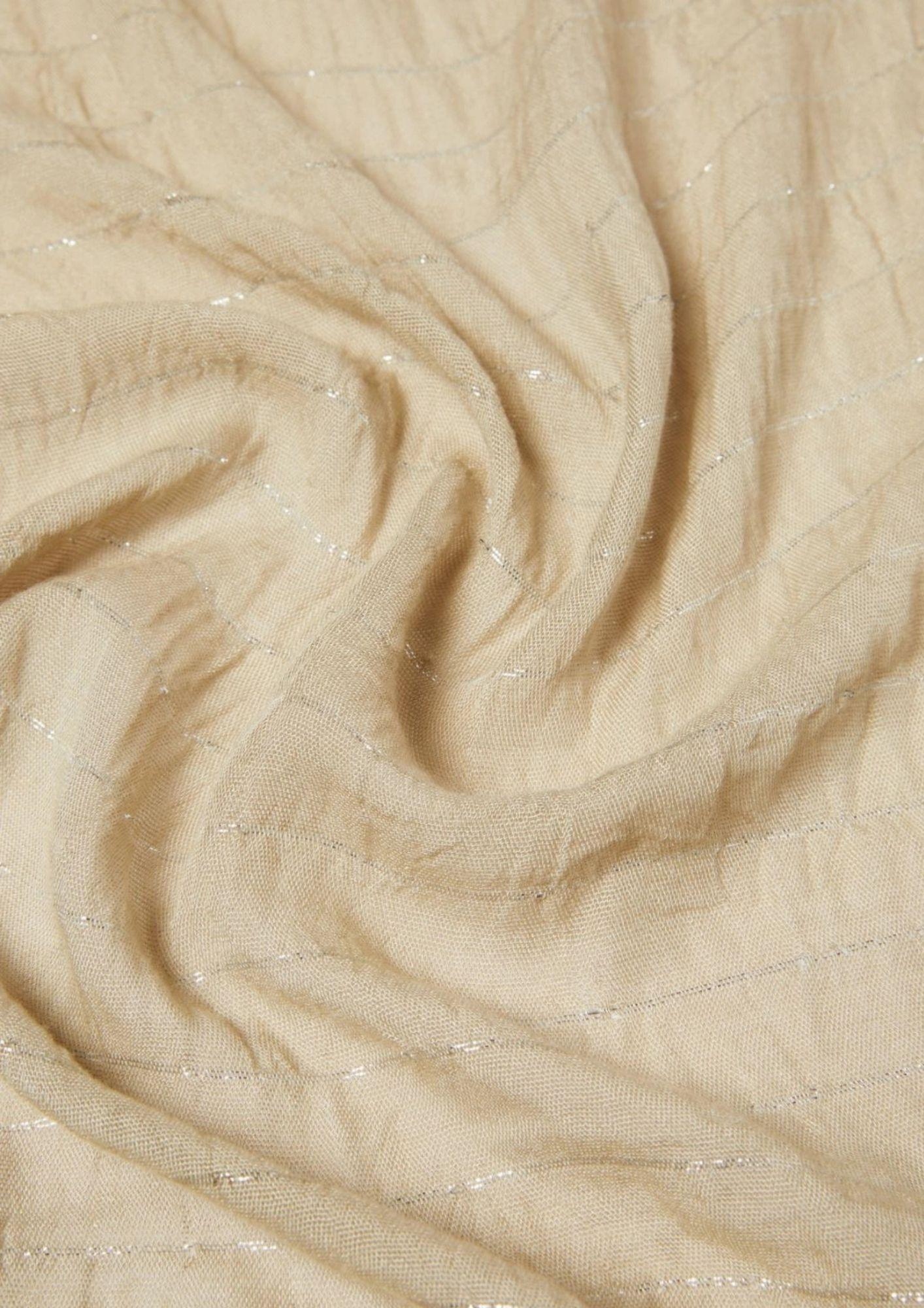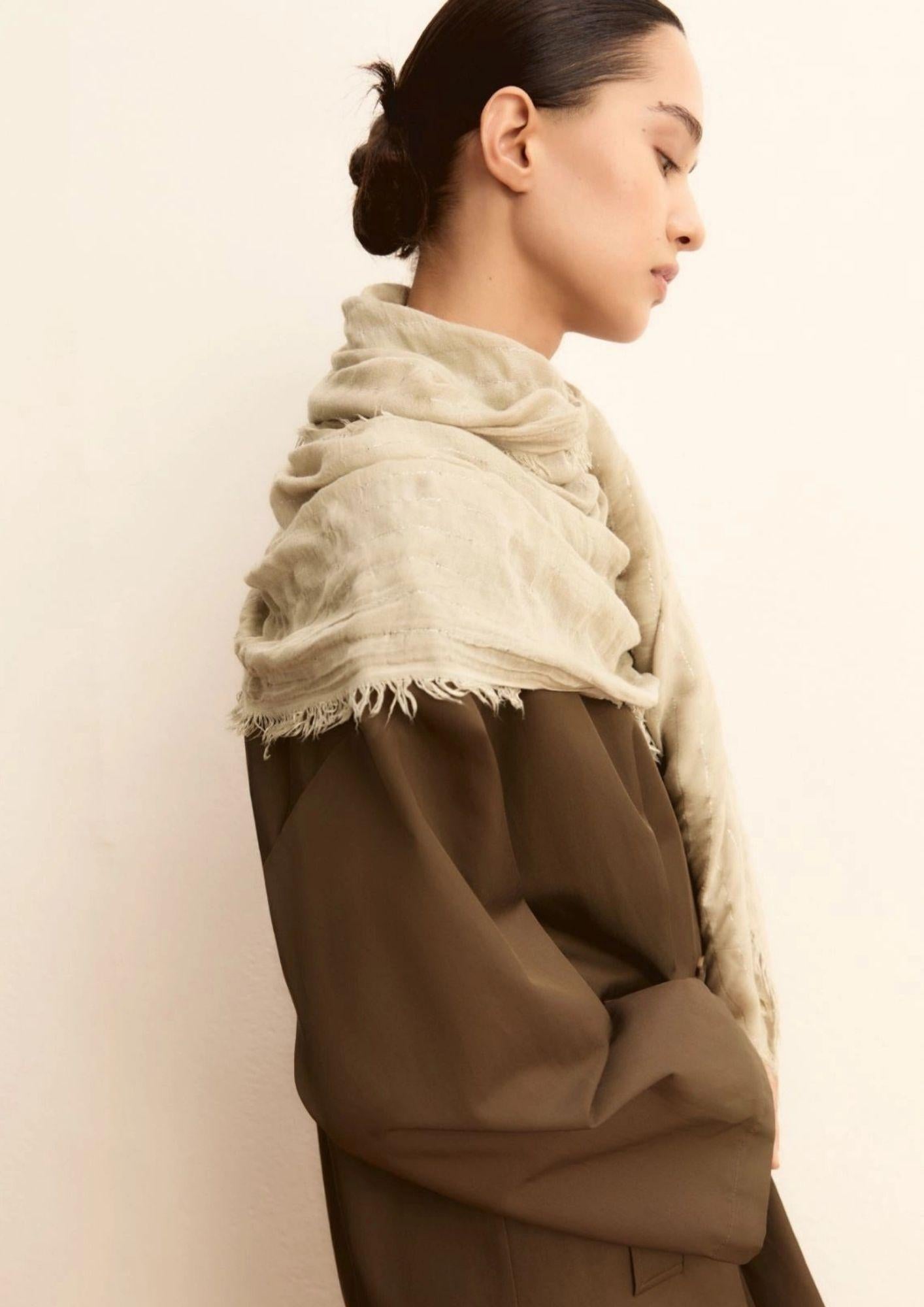 Con il filo di lurex in trama e la trama leggermente stropicciata, questa stola diventa la compagna preferita delle tue mise quotidiane. Abbinala alle t-shirt o ai blazer fluidi per una nota di carattere ai tuoi look. Stola in misto modal e viscosa Texture leggermente stropicciata Frange libere ai bordi