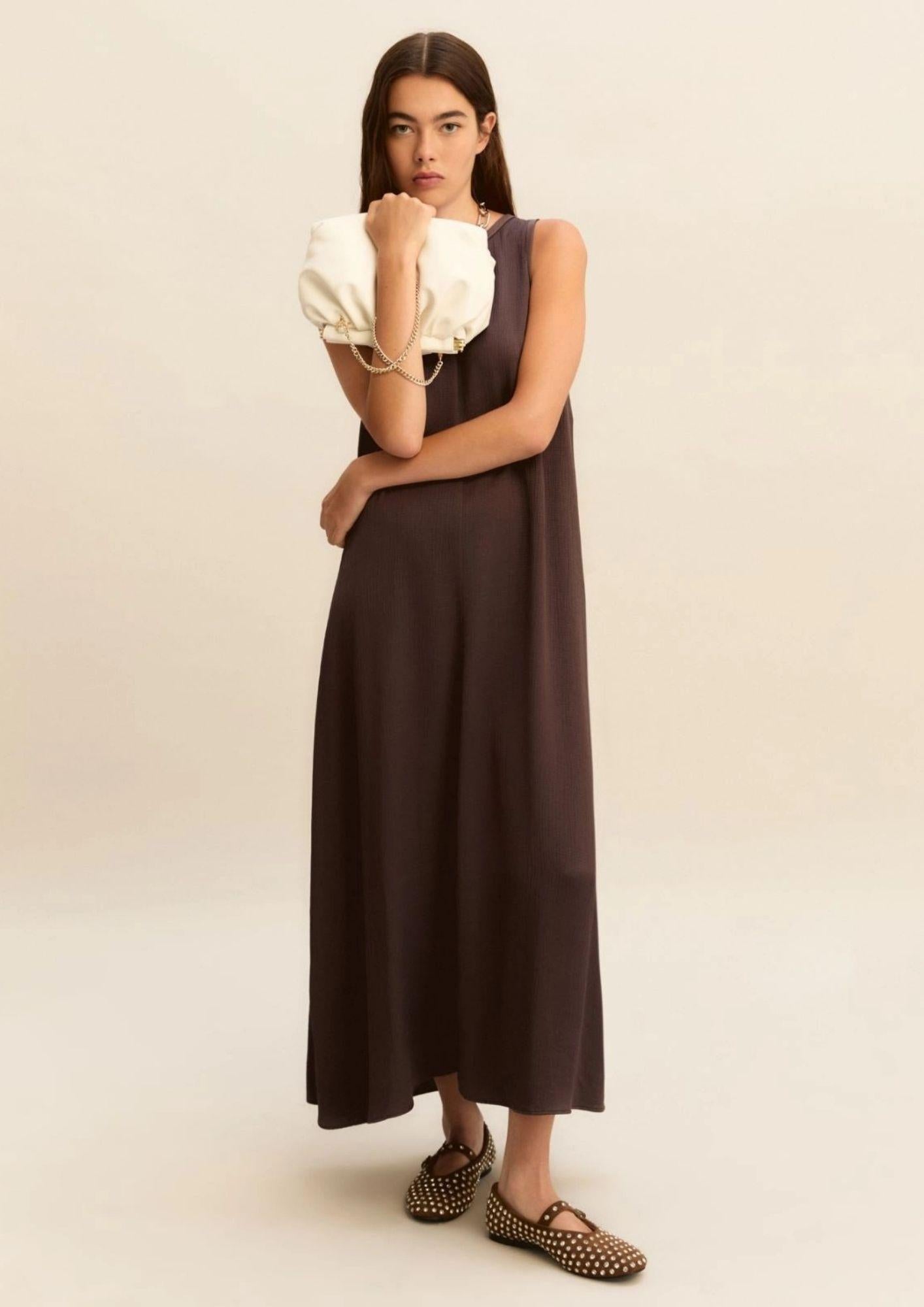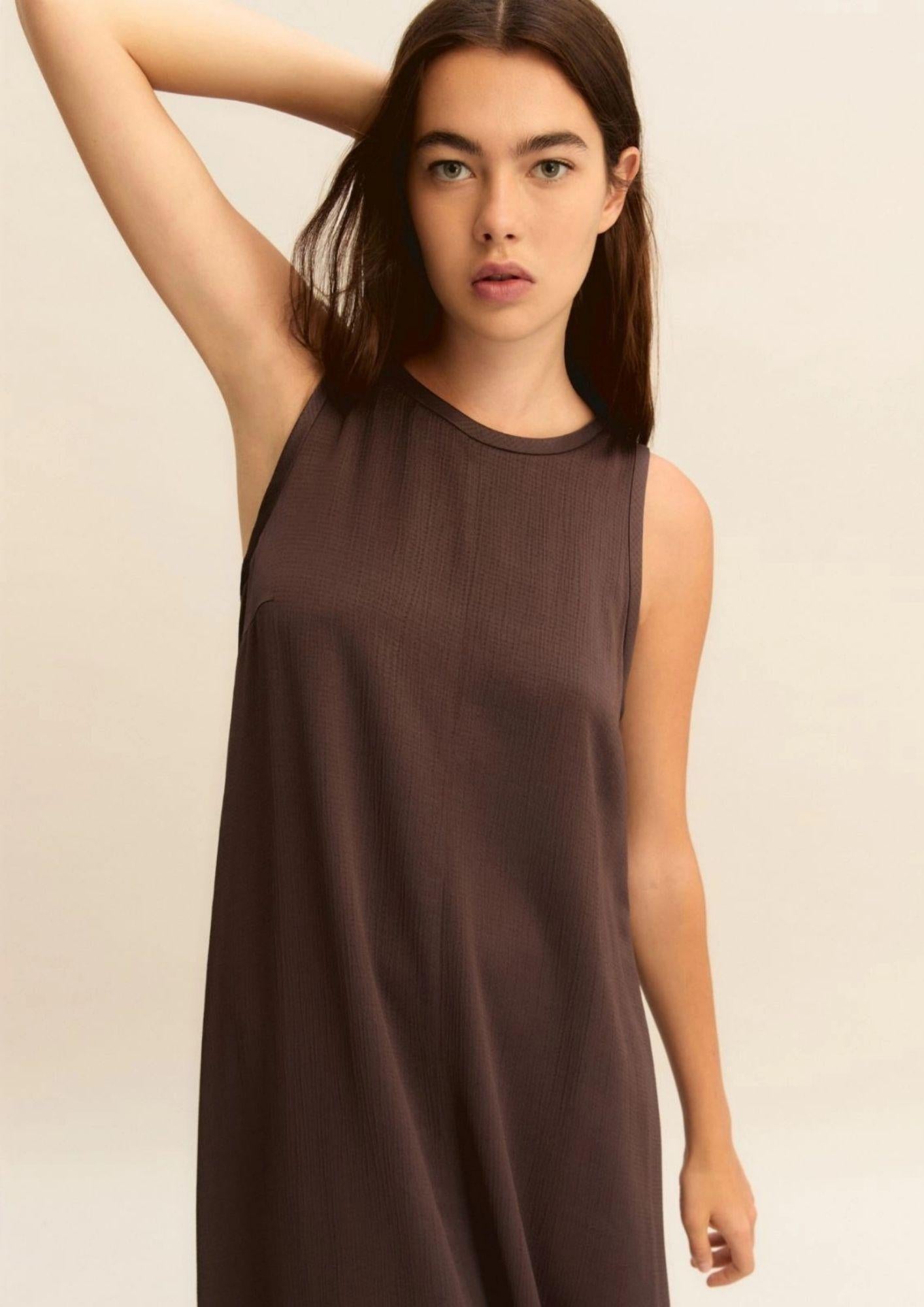 Fluido, smanicato, svasato sulla gonna: ecco l'abito cool da indossare a ripetizione quest'estate. Aggiungi sandali e bracciali scenografici, sarai subito pronta. Tessuto principale contenente materie prime derivanti dalla cellulosa del legno, fibra ricavata nel rispetto del patrimonio forestale Abito in acetato di viscosa lavato