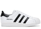 the adidas superstar prada white black is the fusion of a classic adidas silhouette and the premium leather craftsmanship of prada – the italian fashion house.