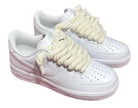 NIKE AIR FORCE 1 LOW TRIPLE WHITE CUSTOM ROPE LACES BEIGE