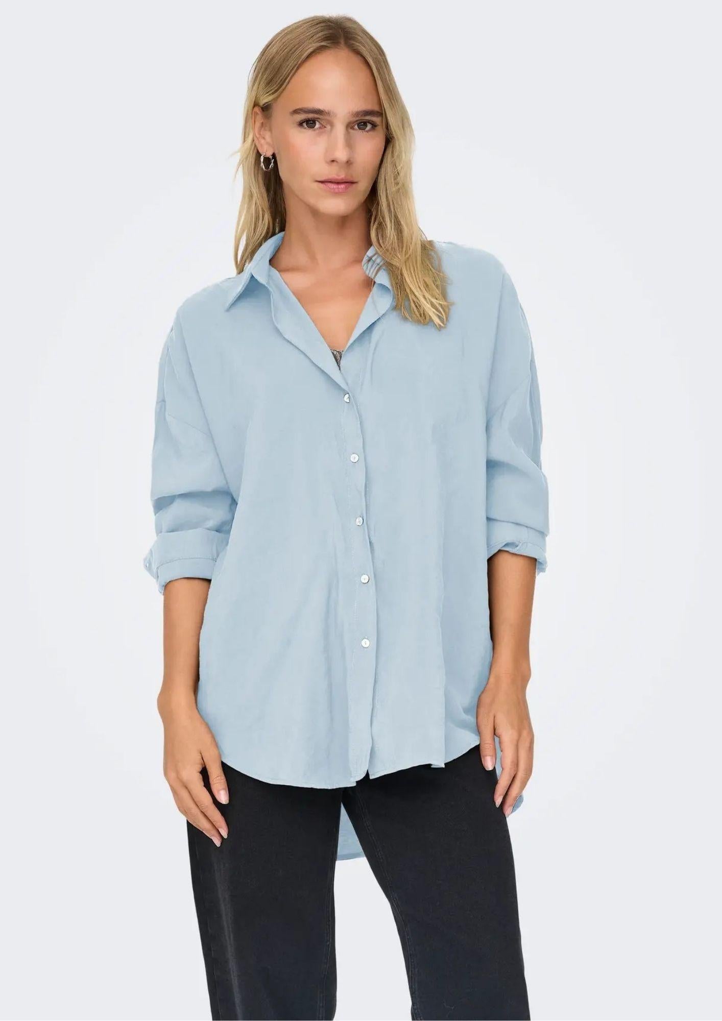 Camicia, maniche lunghe, spalle cadenti, polsini con bottone, chiusura a bottoni, piu lunga sul retro, oversize fit. 84% Modal, 16% Poliestere