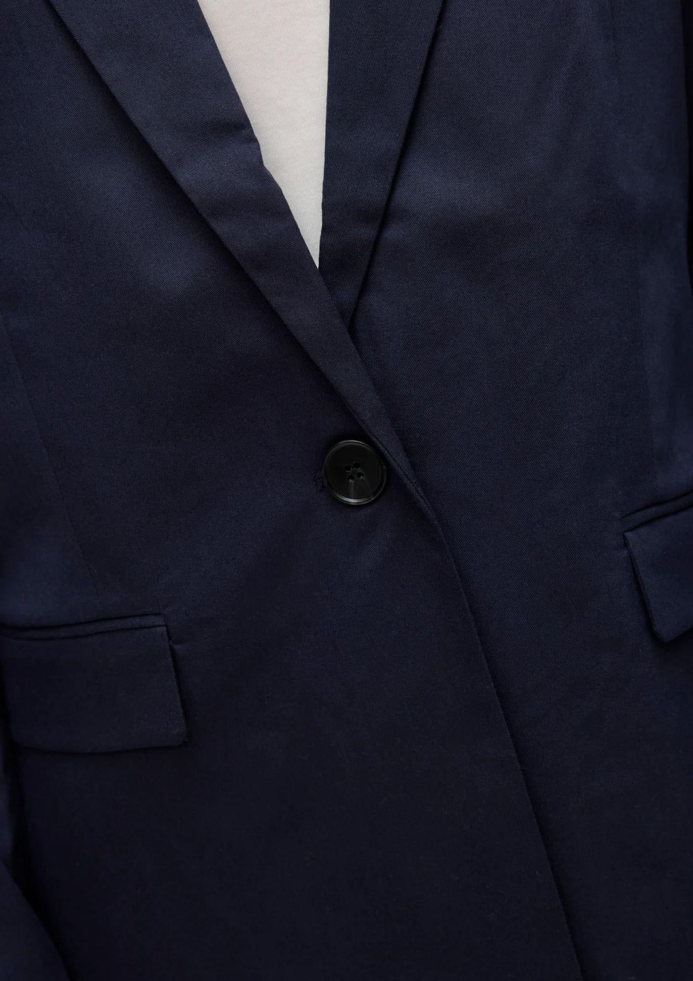 Blazer con collo reverse dal taglio slim fit, pensato per aggiungere un tocco di classe e raffinatezza a qualsiasi look. Versatile e moderno, si abbina facilmente a t-shirt e jeans per un outfit casual chic o a pantaloni eleganti per uno stile più formale. Dotato di tasche frontali e fodera in poliestere per un comfort ottimale. Esterno 50% poliestere riciclato, 30% poliestere, 18% viscosa, 2% elastan. Imbottitura 100% poliestere.